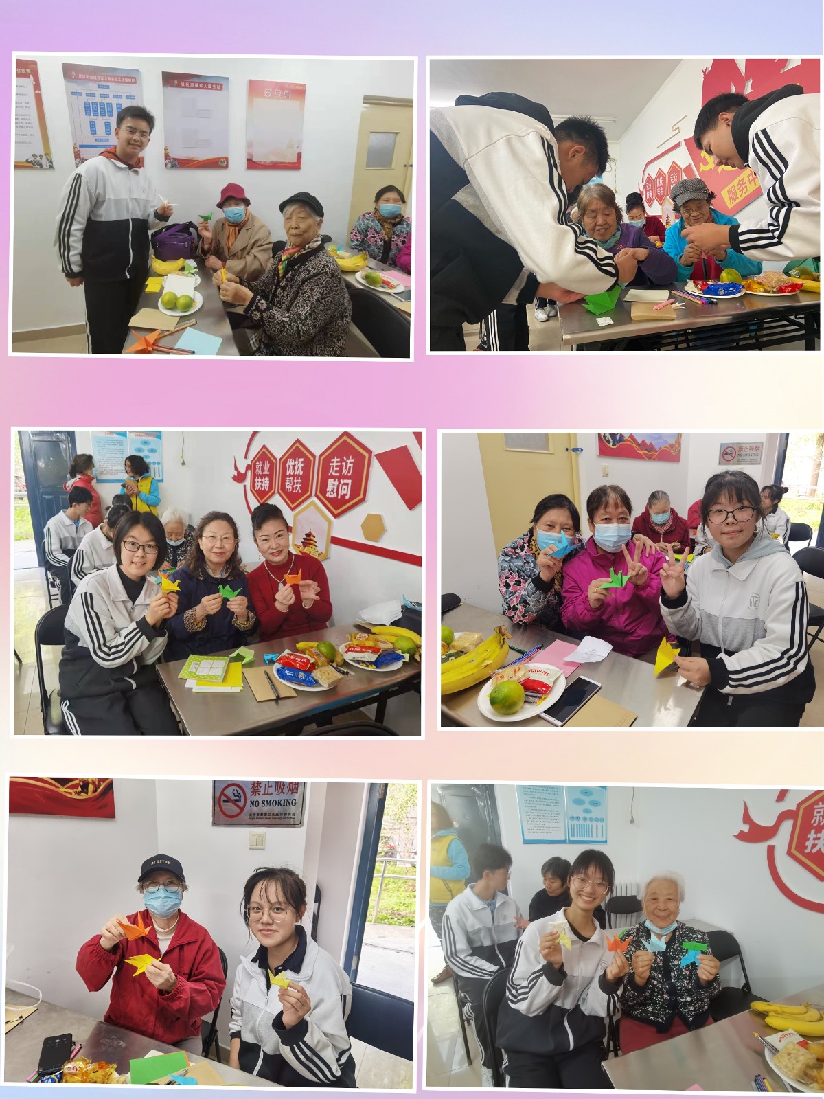 和老人们的聊天中我了解到了一些不同年代的事情,其中一位老人也曾是播音员,她为我们展示了诗朗诵《沁园春・雪》。在教老人折千纸鹤时,我惊讶于