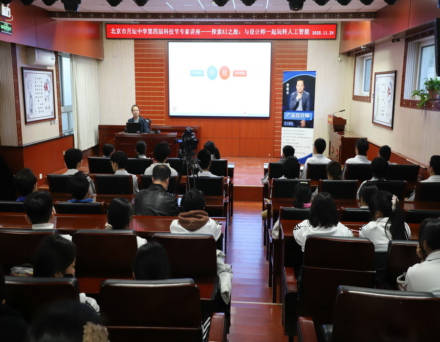 在人工智能重塑世界、新质生产力蓬勃发展的时代背景下,北京市月坛中学积极响应国家号召,聚焦科技前沿,于2025年11月24日至28日隆重举办第四届校园科技节。本届科技节以"AI赋能新视野 少年智造新纪元"为主题,通过五大板块系列活动,构建全方位、多层次的科技体验平台,让每一位学生都能在实践探索中感受科技魅力,激发创新潜能。
